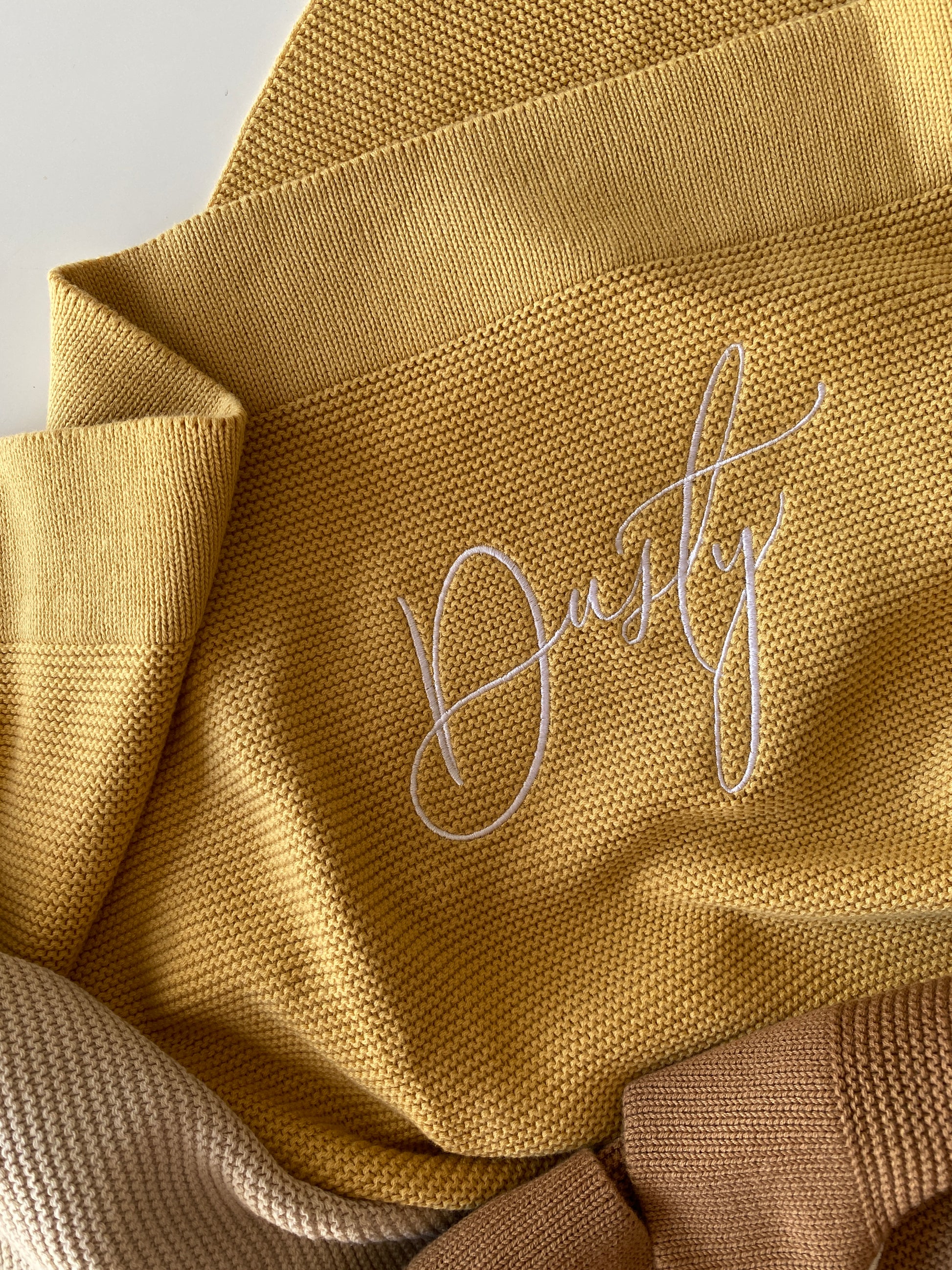 Embroidery is placed at the top centre of the blanket, please specify if you’d like a different location.